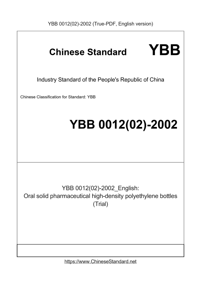 Basic dataStandard ID: YBB 0012(02)-2002 (YBB0012(02)-2002)Description (Translated English): Oral solid pharmaceutical high-density polyethylene bottles (Trial) Sector / Industry: Medical & Pharmaceutical Packaging Industry Standard Classification of Chinese Standard: YBB Tips & Frequently Asked Questions:Question 1: How long will the true-PDF of YBB 0012(02)-2002_English be delivered?Answer: Upon your order, we will start to translate YBB 0012(02)-2002_English as soon as possible, and keep you informed of the progress. The lead time is typically 1 ~ 3 working days. The lengthier the document the longer the lead time.Question 2: Can I share the purchased PDF of YBB 0012(02)-2002_English with my colleagues?Answer: Yes. The purchased PDF of YBB 0012(02)-2002_English will be deemed to be sold to your employer/organization who actually pays for it, including your colleagues and your employer's intranet.Question 3: Does the price include tax/VAT?Answer: Yes. Our tax invoice, downloaded/delivered in 9 seconds, includes all tax/VAT and complies with 100+ countries' tax regulations (tax exempted in 100+ countries) -- See Avoidance of Double Taxation Agreements (DTAs): List of DTAs signed between Singapore and 100+ countriesQuestion 4: Do you accept my currency other than USD?Answer: Yes. If you need your currency to be printed on the invoice, please write an email to Sales@ChineseStandard.net. In 2 working-hours, we will create a special link for you to pay in any currencies. Otherwise, follow the normal steps: Add to Cart -- Checkout -- Select your currency to pay. |