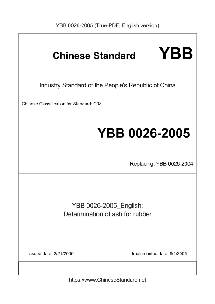 YBB 0026-2005199 Add to Cart 2 days Determination of ash for rubber Obsolete