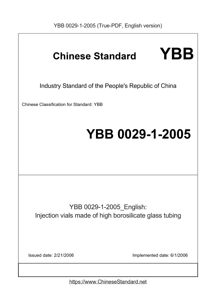 Basic dataStandard ID: YBB 0029-1-2005 (YBB0029-1-2005)Description (Translated English): Injection vials made of high borosilicate glass tubing Sector / Industry: Medical & Pharmaceutical Packaging Industry Standard Classification of Chinese Standard: YBB Date of Issue: 2/21/2006 Date of Implementation: 6/1/2006 Tips & Frequently Asked Questions:Question 1: How long will the true-PDF of YBB 0029-1-2005_English be delivered?Answer: Upon your order, we will start to translate YBB 0029-1-2005_English as soon as possible, and keep you informed of the progress. The lead time is typically 1 ~ 3 working days. The lengthier the document the longer the lead time.Question 2: Can I share the purchased PDF of YBB 0029-1-2005_English with my colleagues?Answer: Yes. The purchased PDF of YBB 0029-1-2005_English will be deemed to be sold to your employer/organization who actually pays for it, including your colleagues and your employer's intranet.Question 3: Does the price include tax/VAT?Answer: Yes. Our tax invoice, downloaded/delivered in 9 seconds, includes all tax/VAT and complies with 100+ countries' tax regulations (tax exempted in 100+ countries) -- See Avoidance of Double Taxation Agreements (DTAs): List of DTAs signed between Singapore and 100+ countriesQuestion 4: Do you accept my currency other than USD?Answer: Yes. If you need your currency to be printed on the invoice, please write an email to Sales@ChineseStandard.net. In 2 working-hours, we will create a special link for you to pay in any currencies. Otherwise, follow the normal steps: Add to Cart -- Checkout -- Select your currency to pay. |