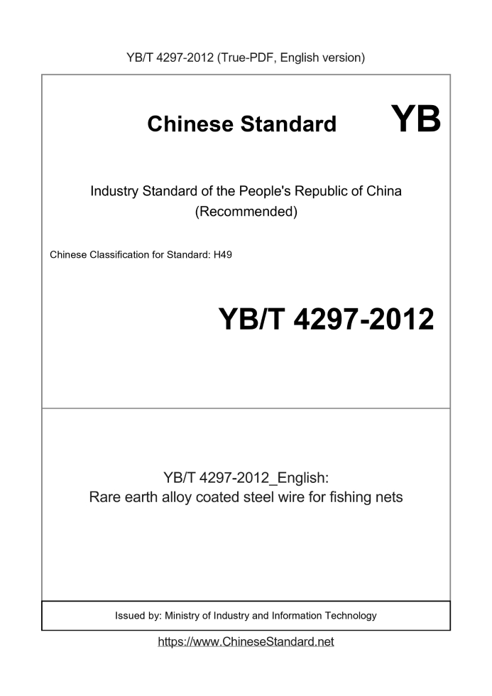 Delivery: <= 3 days. True-PDF full-copy in English will be manually translated and delivered via email. YB/T 4297-2012: Rare earth alloy coated steel wire for fishing nets Status: Valid