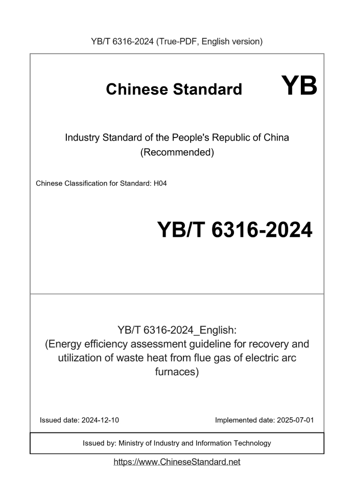 Basic dataStandard ID: YB/T 6316-2024 (YB/T6316-2024)Description (Translated English): (Energy efficiency assessment guideline for recovery and utilization of waste heat from flue gas of electric arc furnaces) Sector / Industry: Ferrous Metallurgy Industry Standard (Recommended) Classification of Chinese Standard: H04 Classification of International Standard: 77.010 Date of Issue: 2024-12-10 Date of Implementation: 2025-07-01 Issuing agency(ies): Ministry of Industry and Information Technology Summary: This standard specifies the basic principles, evaluation steps, statistical scope of waste heat recovery, evaluation system, and energy efficiency level for energy efficiency evaluation of waste heat recovery of electric arc furnace flue gas. This document is applicable to energy efficiency evaluation and energy saving potential analysis of waste heat recovery of electric arc furnace flue gas in steel enterprises. Tips & Frequently Asked Questions:Question 1: How long will the true-PDF of YB/T 6316-2024_English be delivered?Answer: Upon your order, we will start to translate YB/T 6316-2024_English as soon as possible, and keep you informed of the progress. The lead time is typically 1 ~ 3 working days. The lengthier the document the longer the lead time.Question 2: Can I share the purchased PDF of YB/T 6316-2024_English with my colleagues?Answer: Yes. The purchased PDF of YB/T 6316-2024_English will be deemed to be sold to your employer/organization who actually pays for it, including your colleagues and your employer's intranet.Question 3: Does the price include tax/VAT?Answer: Yes. Our tax invoice, downloaded/delivered in 9 seconds, includes all tax/VAT and complies with 100+ countries' tax regulations (tax exempted in 100+ countries) -- See Avoidance of Double Taxation Agreements (DTAs): List of DTAs signed between Singapore and 100+ countriesQuestion 4: Do you accept my currency other than USD?Answer: Yes. If you need your currency to be printed on the invoice, please write an email to Sales@ChineseStandard.net. In 2 working-hours, we will create a special link for you to pay in any currencies. Otherwise, follow the normal steps: Add to Cart -- Checkout -- Select your currency to pay. |
