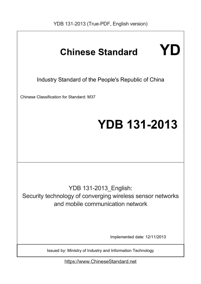 Delivery: <= 3 days. True-PDF full-copy in English will be manually translated and delivered via email. YDB131-2013: Security technology of converging wireless sensor networks and mobile communication network Status: Valid