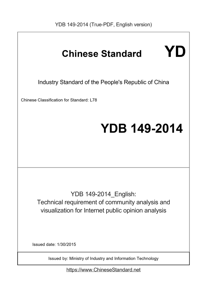 Delivery: <= 3 days. True-PDF full-copy in English will be manually translated and delivered via email. YDB149-2014: Technical requirement of community analysis and visualization for Internet public opinion analysis Status: Valid