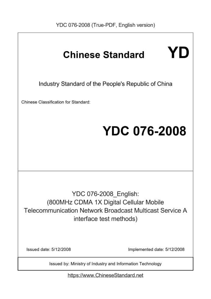 Basic dataStandard ID: YDC 076-2008 (YDC076-2008)Description (Translated English): (800MHz CDMA 1X Digital Cellular Mobile Telecommunication Network Broadcast Multicast Service A interface test methods) Sector / Industry: Telecommunication Industry Standard Date of Issue: 5/12/2008 Date of Implementation: 5/12/2008 Regulation (derived from): Information-Science-Letter [2008] 17; Industry-Science [2010] No. 134; Ministry of Industry and Information Technology Notice 2014 No. 33 Issuing agency(ies): Ministry of Industry and Information Technology Tips & Frequently Asked Questions:Question 1: How long will the true-PDF of YDC076-2008_English be delivered?Answer: Upon your order, we will start to translate YDC076-2008_English as soon as possible, and keep you informed of the progress. The lead time is typically in 9 seconds (download/delivered in 9 seconds). The lengthier the document the longer the lead time.Question 2: Can I share the purchased PDF of YDC076-2008_English with my colleagues?Answer: Yes. The purchased PDF of YDC076-2008_English will be deemed to be sold to your employer/organization who actually pays for it, including your colleagues and your employer's intranet.Question 3: Does the price include tax/VAT?Answer: Yes. Our tax invoice, downloaded/delivered in 9 seconds, includes all tax/VAT and complies with 100+ countries' tax regulations (tax exempted in 100+ countries) -- See Avoidance of Double Taxation Agreements (DTAs): List of DTAs signed between Singapore and 100+ countriesQuestion 4: Do you accept my currency other than USD?Answer: Yes. If you need your currency to be printed on the invoice, please write an email to Sales@ChineseStandard.net. In 2 working-hours, we will create a special link for you to pay in any currencies. Otherwise, follow the normal steps: Add to Cart -- Checkout -- Select your currency to pay. |