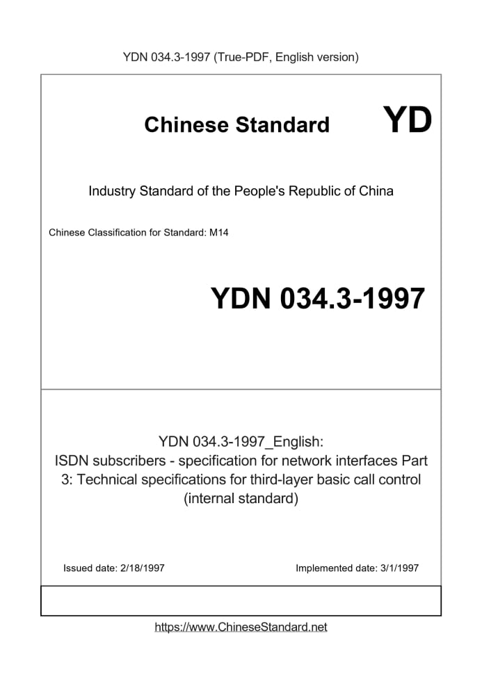 Basic dataStandard ID: YDN 034.3-1997 (YDN034.3-1997)Description (Translated English): ISDN subscribers - specification for network interfaces Part 3: Technical specifications for third-layer basic call control (internal standard) Sector / Industry: Telecommunication Industry Standard Classification of Chinese Standard: M14 Word Count Estimation: 144,186 Date of Issue: 2/18/1997 Date of Implementation: 3/1/1997 Adopted Standard: ITU-T Q.930/I.450-1993, MOD; ITU-T Q.931/I.451-1993, MOD Summary: This standard specifies the various functional pathways third layer provides the ISDN user-network interface to establish, maintain and remove programs Fi. The program provides a process for message exchange in the basic rate and primary rate interface structure pathways. Tips & Frequently Asked Questions:Question 1: How long will the true-PDF of YDN034.3-1997_English be delivered?Answer: Upon your order, we will start to translate YDN034.3-1997_English as soon as possible, and keep you informed of the progress. The lead time is typically 1 ~ 3 working days. The lengthier the document the longer the lead time.Question 2: Can I share the purchased PDF of YDN034.3-1997_English with my colleagues?Answer: Yes. The purchased PDF of YDN034.3-1997_English will be deemed to be sold to your employer/organization who actually pays for it, including your colleagues and your employer's intranet.Question 3: Does the price include tax/VAT?Answer: Yes. Our tax invoice, downloaded/delivered in 9 seconds, includes all tax/VAT and complies with 100+ countries' tax regulations (tax exempted in 100+ countries) -- See Avoidance of Double Taxation Agreements (DTAs): List of DTAs signed between Singapore and 100+ countriesQuestion 4: Do you accept my currency other than USD?Answer: Yes. If you need your currency to be printed on the invoice, please write an email to Sales@ChineseStandard.net. In 2 working-hours, we will create a special link for you to pay in any currencies. Otherwise, follow the normal steps: Add to Cart -- Checkout -- Select your currency to pay. |