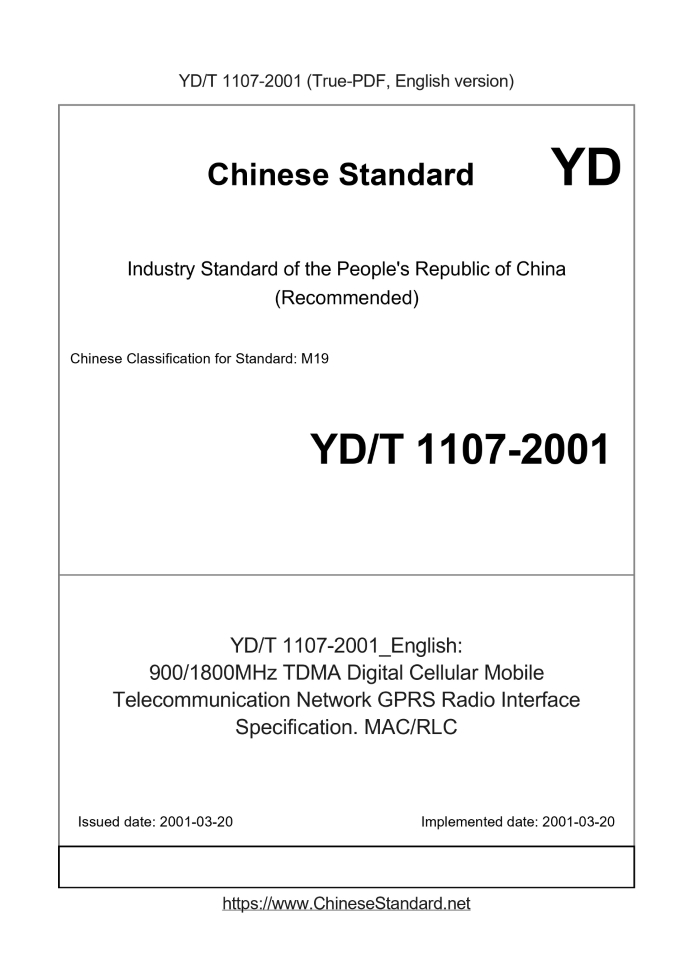 YD/T 1107-2001 English PDF