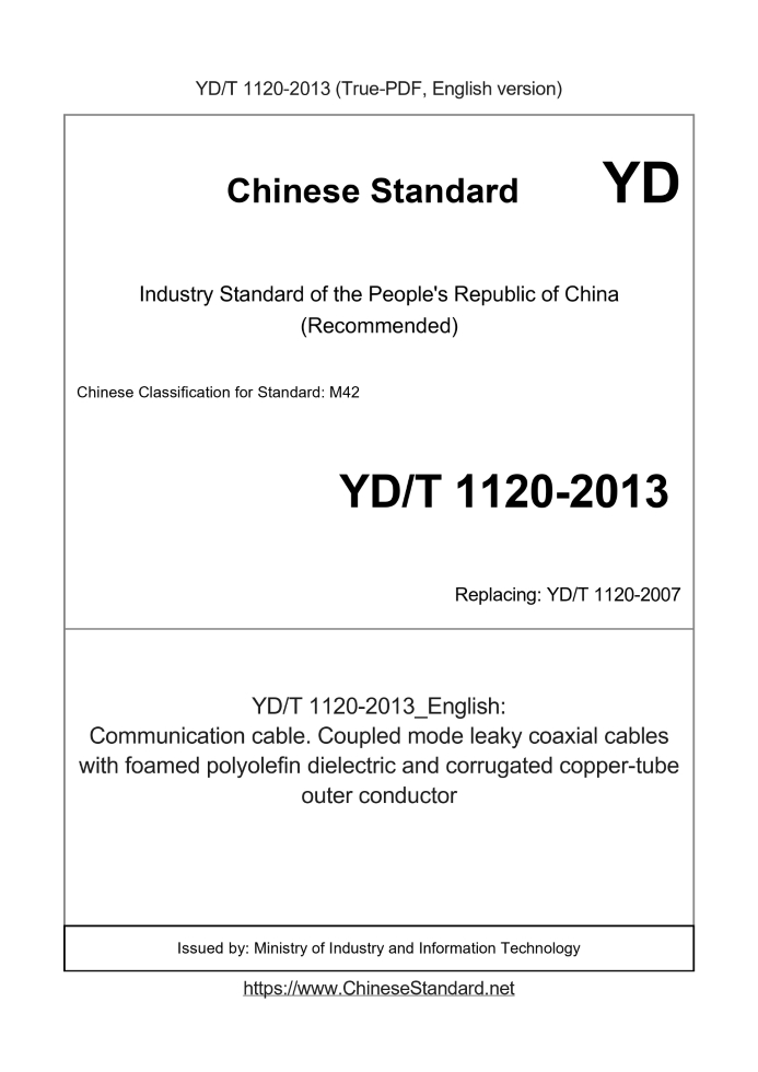 YD/T 1120-2013629 Add to Cart 5 days Communication cable. Coupled mode leaky coaxial cables with foamed polyolefin dielectric and corrugated copper-tube outer conductor Valid