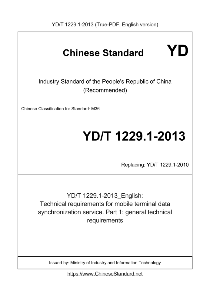Delivery: <= 4 days. True-PDF full-copy in English will be manually translated and delivered via email. YD/T 1229.1-2013: Technical requirements for mobile terminal data synchronization service. Part 1: general technical requirements Status: Valid YD/T 1229.1: Historical versions