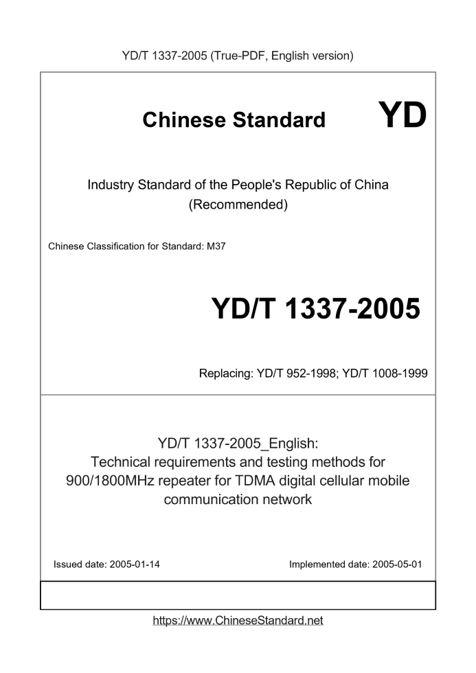 YD/T 1337-2005 English PDFUS$739.00 ยท In stock