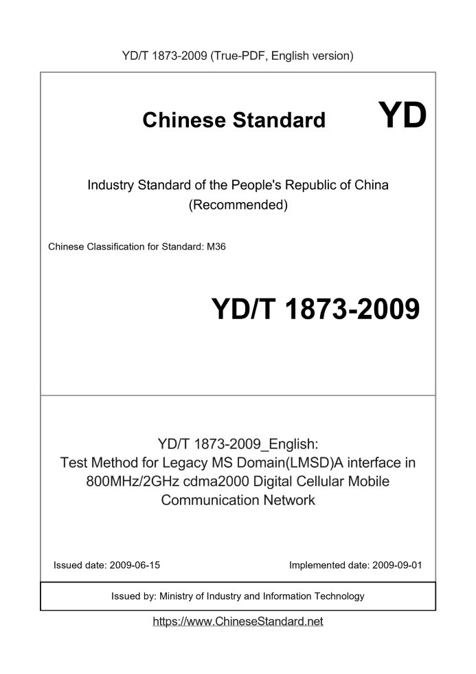 Basic dataStandard ID: YD/T 1873-2009 (YD/T1873-2009)Description (Translated English): Test Method for Legacy MS Domain(LMSD)A interface in 800MHz/2GHz cdma2000 Digital Cellular Mobile Communication Network Sector / Industry: Telecommunication Industry Standard (Recommended) Classification of Chinese Standard: M36 Classification of International Standard: 33.060.99 Word Count Estimation: 109,196 Date of Issue: 2009-06-15 Date of Implementation: 2009-09-01 Quoted Standard: YD/T 1559-2007; YD/T 1872-2009 Regulation (derived from): MIIT [2009] No. 43 Issuing agency(ies): Ministry of Industry and Information Technology Summary: This standard specifies the 800MHz/2GHz cdma2000 digital cellular mobile communication network of traditional terminal domain (LMSD) mobile switching center and the interface between the base station subsystem test methods, including voice business process, supplementary services and short message, the packet data service processing, wireless resources management, mobility management and authentication and management of terrestrial circuits and test environment. This standard applies to 800MHz/2GHz cdma2000 digital cellular mobile communication network of traditional terminal domain (LMSD) system equipment. Tips & Frequently Asked Questions:Question 1: How long will the true-PDF of YD/T 1873-2009_English be delivered?Answer: Upon your order, we will start to translate YD/T 1873-2009_English as soon as possible, and keep you informed of the progress. The lead time is typically 1 ~ 3 working days. The lengthier the document the longer the lead time.Question 2: Can I share the purchased PDF of YD/T 1873-2009_English with my colleagues?Answer: Yes. The purchased PDF of YD/T 1873-2009_English will be deemed to be sold to your employer/organization who actually pays for it, including your colleagues and your employer's intranet.Question 3: Does the price include tax/VAT?Answer: Yes. Our tax invoice, downloaded/delivered in 9 seconds, includes all tax/VAT and complies with 100+ countries' tax regulations (tax exempted in 100+ countries) -- See Avoidance of Double Taxation Agreements (DTAs): List of DTAs signed between Singapore and 100+ countriesQuestion 4: Do you accept my currency other than USD?Answer: Yes. If you need your currency to be printed on the invoice, please write an email to Sales@ChineseStandard.net. In 2 working-hours, we will create a special link for you to pay in any currencies. Otherwise, follow the normal steps: Add to Cart -- Checkout -- Select your currency to pay. |
