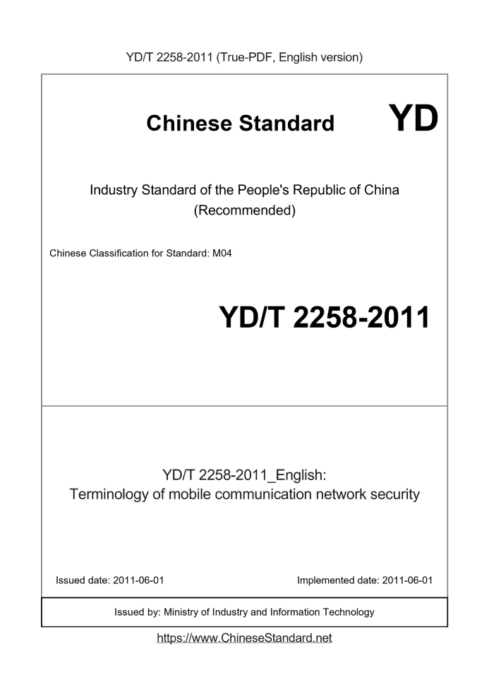 Delivery: <= 3 days. True-PDF full-copy in English will be manually translated and delivered via email. YD/T 2258-2011: Terminology of mobile communication network security Status: Valid