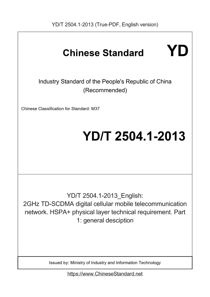 Delivery: <= 3 days. True-PDF full-copy in English will be manually translated and delivered via email. YD/T 2504.1-2013: 2GHz TD-SCDMA digital cellular mobile telecommunication network. HSPA+ physical layer technical requirement. Part 1: general desciption Status: Valid