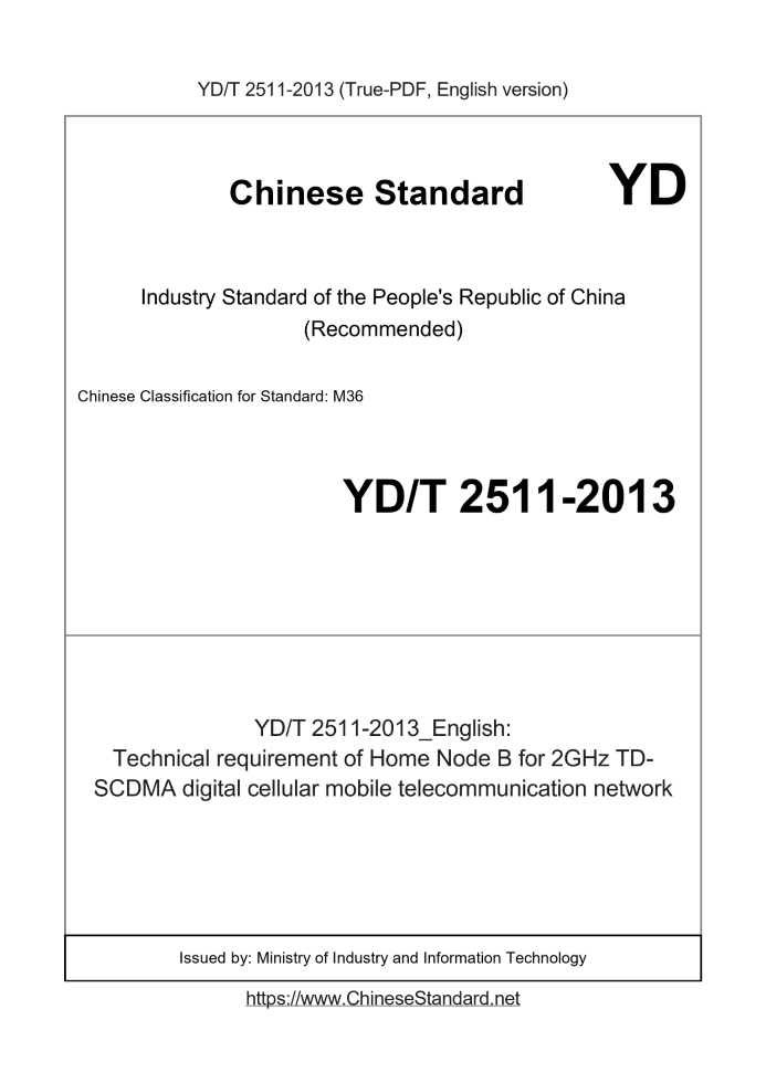 Delivery: <= 6 days. True-PDF full-copy in English will be manually translated and delivered via email. YD/T 2511-2013: Technical requirement of Home Node B for 2GHz TD-SCDMA digital cellular mobile telecommunication network Status: Valid