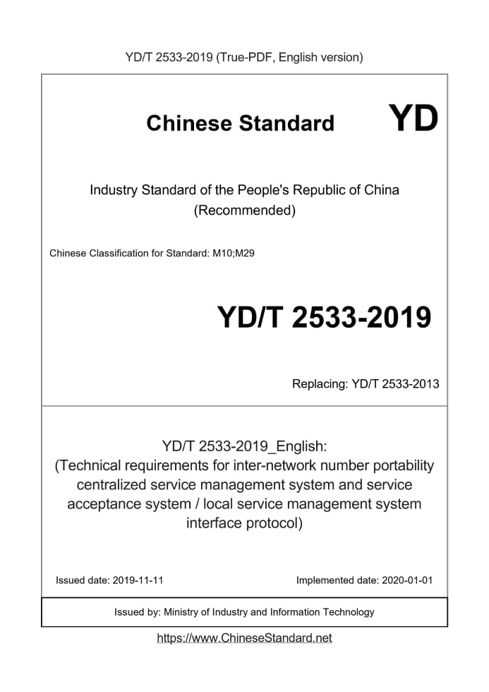 YD/T 2533-2019 English PDFYD/T 2533: Historical versions