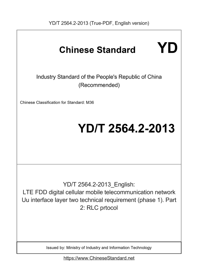 Delivery: <= 4 days. True-PDF full-copy in English will be manually translated and delivered via email. YD/T 2564.2-2013: LTE FDD digital cellular mobile telecommunication network Uu interface layer two technical requirement (phase 1). Part 2: RLC prtocol Status: Valid