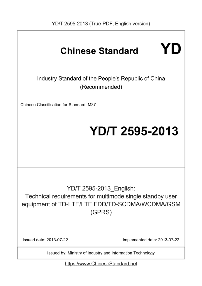 Basic dataStandard ID: YD/T 2595-2013 (YD/T2595-2013)Description (Translated English): Technical requirements for multimode single standby user equipment of TD-LTE/LTE FDD/TD-SCDMA/WCDMA/GSM (GPRS) Sector / Industry: Telecommunication Industry Standard (Recommended) Classification of Chinese Standard: M37 Classification of International Standard: 33.060.20 Word Count Estimation: 39,366 Date of Issue: 2013-07-22 Date of Implementation: 2013-07-22 Quoted Standard: GB 16649.3; GB 4943.1; GB/T 18287; GB/T 18288; GB/T 18289; GB/T 22450.1; YD/T 1025; YD/T 1041; YD/T 1214; YD 1268; YD/T 1538; YD/T 1591; YD/T 1539; YD/T 1592.1; YD/T 1595.1; YD/T 1762; YD/T 2217; YD/T 2220; YD/T 2307; YD/T 2577; YD/T 2581; YD/T 2583.14; 3 Regulation (derived from): Ministry of Industry and Information Technology Bulletin No. 38 of 2013 Issuing agency(ies): Ministry of Industry and Information Technology Summary: This standard specifies the TD-LTE/LTE FDD/TD-SCDMA/WCDMA/GSM (GPRS) multi-mode terminal equipment to be specific to a single basic services and functions, performance, and reliability of the environment, card interface, electromagnetic compatibility, the Tips & Frequently Asked Questions:Question 1: How long will the true-PDF of YD/T 2595-2013_English be delivered?Answer: Upon your order, we will start to translate YD/T 2595-2013_English as soon as possible, and keep you informed of the progress. The lead time is typically in 9 seconds (download/delivered in 9 seconds). The lengthier the document the longer the lead time.Question 2: Can I share the purchased PDF of YD/T 2595-2013_English with my colleagues?Answer: Yes. The purchased PDF of YD/T 2595-2013_English will be deemed to be sold to your employer/organization who actually pays for it, including your colleagues and your employer's intranet.Question 3: Does the price include tax/VAT?Answer: Yes. Our tax invoice, downloaded/delivered in 9 seconds, includes all tax/VAT and complies with 100+ countries' tax regulations (tax exempted in 100+ countries) -- See Avoidance of Double Taxation Agreements (DTAs): List of DTAs signed between Singapore and 100+ countriesQuestion 4: Do you accept my currency other than USD?Answer: Yes. If you need your currency to be printed on the invoice, please write an email to Sales@ChineseStandard.net. In 2 working-hours, we will create a special link for you to pay in any currencies. Otherwise, follow the normal steps: Add to Cart -- Checkout -- Select your currency to pay. |