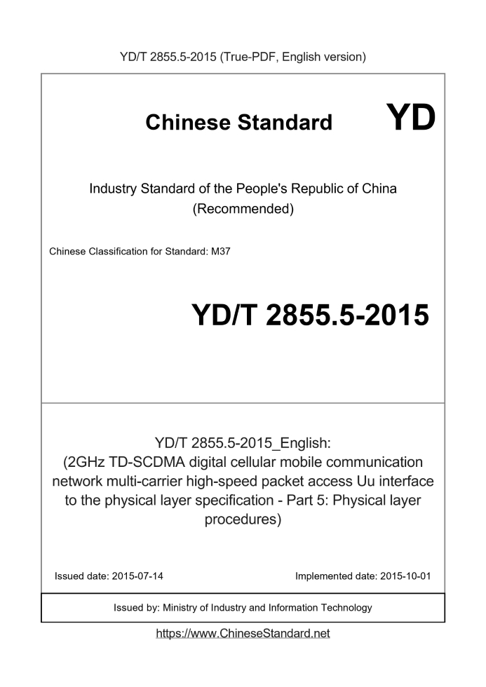Delivery: <= 7 days. True-PDF full-copy in English will be manually translated and delivered via email. YD/T 2855.5-2015: (2GHz TD-SCDMA digital cellular mobile communication network multi-carrier high-speed packet access Uu interface to the physical layer specification - Part 5: Physical layer procedures) Status: Valid