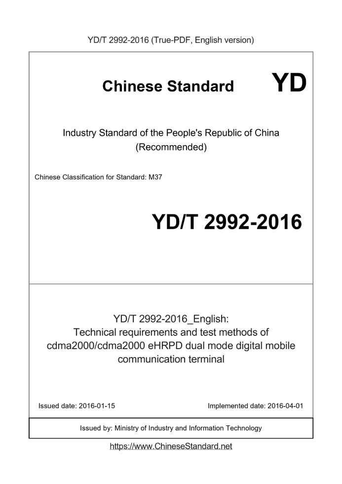 YD/T 2992-2016 English PDFUS$399.00 ยท In stock