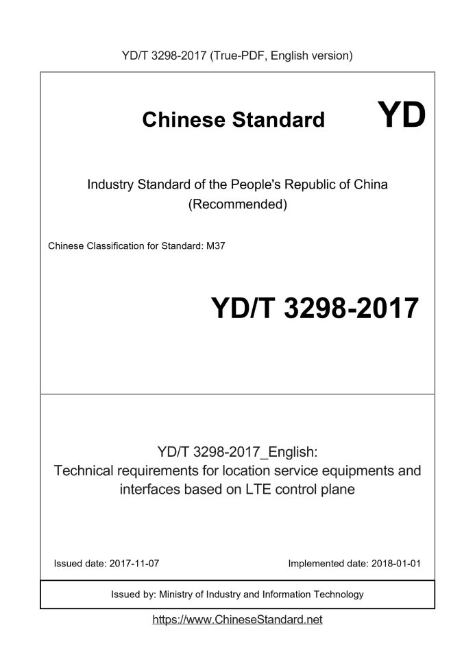 Delivery: <= 3 days. True-PDF full-copy in English will be manually translated and delivered via email. YD/T 3298-2017: Technical requirements for location service equipments and interfaces based on LTE control plane Status: Valid