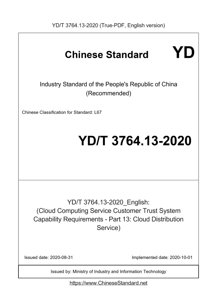 | YD/T 3764.13-2020 English PDFUS$279.00 ยท In stock Delivery: <= 3 days. True-PDF full-copy in English will be manually translated and delivered via email. YD/T 3764.13-2020: (Cloud Computing Service Customer Trust System Capability Requirements - Part 13: Cloud Distribution Service) Status: Valid