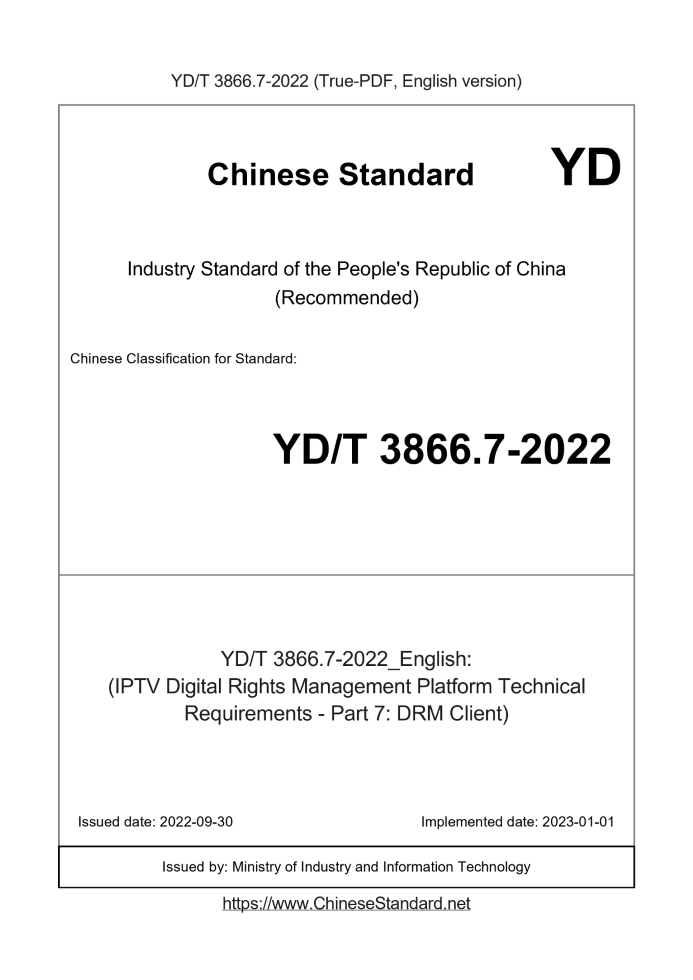 Basic dataStandard ID: YD/T 3866.7-2022 (YD/T3866.7-2022)Description (Translated English): (IPTV Digital Rights Management Platform Technical Requirements - Part 7: DRM Client) Sector / Industry: Telecommunication Industry Standard (Recommended) Date of Issue: 2022-09-30 Date of Implementation: 2023-01-01 Issuing agency(ies): Ministry of Industry and Information Technology Tips & Frequently Asked Questions:Question 1: How long will the true-PDF of YD/T 3866.7-2022_English be delivered?Answer: Upon your order, we will start to translate YD/T 3866.7-2022_English as soon as possible, and keep you informed of the progress. The lead time is typically 1 ~ 3 working days. The lengthier the document the longer the lead time.Question 2: Can I share the purchased PDF of YD/T 3866.7-2022_English with my colleagues?Answer: Yes. The purchased PDF of YD/T 3866.7-2022_English will be deemed to be sold to your employer/organization who actually pays for it, including your colleagues and your employer's intranet.Question 3: Does the price include tax/VAT?Answer: Yes. Our tax invoice, downloaded/delivered in 9 seconds, includes all tax/VAT and complies with 100+ countries' tax regulations (tax exempted in 100+ countries) -- See Avoidance of Double Taxation Agreements (DTAs): List of DTAs signed between Singapore and 100+ countriesQuestion 4: Do you accept my currency other than USD?Answer: Yes. If you need your currency to be printed on the invoice, please write an email to Sales@ChineseStandard.net. In 2 working-hours, we will create a special link for you to pay in any currencies. Otherwise, follow the normal steps: Add to Cart -- Checkout -- Select your currency to pay. |