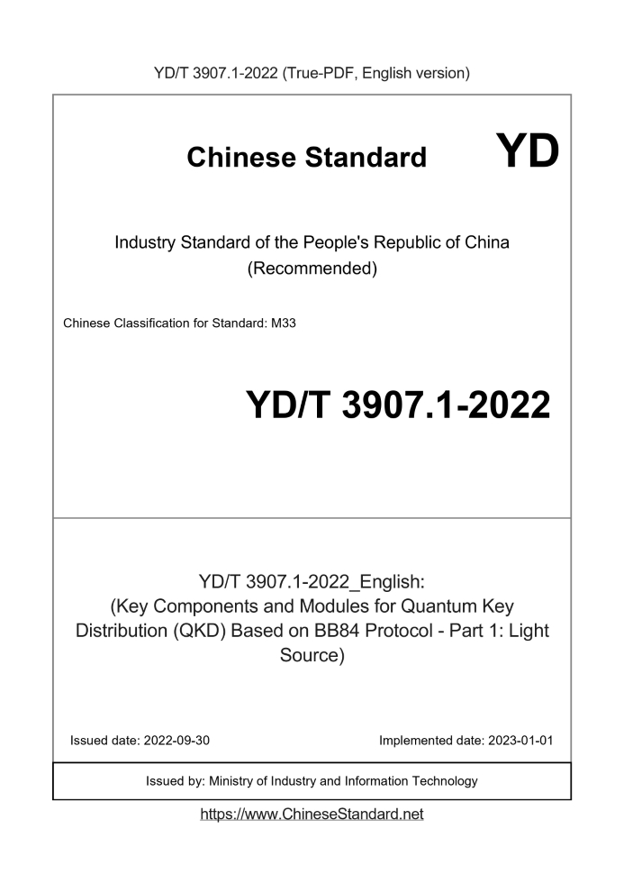 | YD/T 3907.1-2022 English PDFUS$519.00 ยท In stock Delivery: <= 4 days. True-PDF full-copy in English will be manually translated and delivered via email. YD/T 3907.1-2022: (Key Components and Modules for Quantum Key Distribution (QKD) Based on BB84 Protocol - Part 1: Light Source) Status: Valid