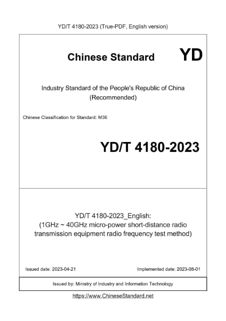 Basic dataStandard ID: YD/T 4180-2023 (YD/T4180-2023)Description (Translated English): (1GHz ~ 40GHz micro-power short-distance radio transmission equipment radio frequency test method) Sector / Industry: Telecommunication Industry Standard (Recommended) Classification of Chinese Standard: M36 Classification of International Standard: 33.060.99 Date of Issue: 2023-04-21 Date of Implementation: 2023-08-01 Issuing agency(ies): Ministry of Industry and Information Technology Summary: This standard specifies the transmission power, frequency of use, frequency tolerance, occupied bandwidth, dwell time, number of frequency hopping channels, spurious radiation emissions and Test methods for conducted disturbance emissions. This standard applies to the management of research and development, production, acceptance and use of micropower equipment from 1GHz to 40GHz. Tips & Frequently Asked Questions:Question 1: How long will the true-PDF of YD/T 4180-2023_English be delivered?Answer: Upon your order, we will start to translate YD/T 4180-2023_English as soon as possible, and keep you informed of the progress. The lead time is typically 1 ~ 3 working days. The lengthier the document the longer the lead time.Question 2: Can I share the purchased PDF of YD/T 4180-2023_English with my colleagues?Answer: Yes. The purchased PDF of YD/T 4180-2023_English will be deemed to be sold to your employer/organization who actually pays for it, including your colleagues and your employer's intranet.Question 3: Does the price include tax/VAT?Answer: Yes. Our tax invoice, downloaded/delivered in 9 seconds, includes all tax/VAT and complies with 100+ countries' tax regulations (tax exempted in 100+ countries) -- See Avoidance of Double Taxation Agreements (DTAs): List of DTAs signed between Singapore and 100+ countriesQuestion 4: Do you accept my currency other than USD?Answer: Yes. If you need your currency to be printed on the invoice, please write an email to Sales@ChineseStandard.net. In 2 working-hours, we will create a special link for you to pay in any currencies. Otherwise, follow the normal steps: Add to Cart -- Checkout -- Select your currency to pay. |