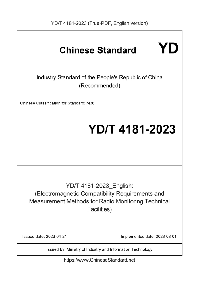 Basic dataStandard ID: YD/T 4181-2023 (YD/T4181-2023)Description (Translated English): (Electromagnetic Compatibility Requirements and Measurement Methods for Radio Monitoring Technical Facilities) Sector / Industry: Telecommunication Industry Standard (Recommended) Classification of Chinese Standard: M36 Classification of International Standard: 33.060 Date of Issue: 2023-04-21 Date of Implementation: 2023-08-01 Issuing agency(ies): Ministry of Industry and Information Technology Summary: This standard specifies the electromagnetic compatibility limits, performance criteria requirements and test methods of radio monitoring technology facilities. This standard applies to portable monitoring equipment and core equipment in fixed monitoring stations, mobile monitoring stations, and removable monitoring systems. Tips & Frequently Asked Questions:Question 1: How long will the true-PDF of YD/T 4181-2023_English be delivered?Answer: Upon your order, we will start to translate YD/T 4181-2023_English as soon as possible, and keep you informed of the progress. The lead time is typically 1 ~ 3 working days. The lengthier the document the longer the lead time.Question 2: Can I share the purchased PDF of YD/T 4181-2023_English with my colleagues?Answer: Yes. The purchased PDF of YD/T 4181-2023_English will be deemed to be sold to your employer/organization who actually pays for it, including your colleagues and your employer's intranet.Question 3: Does the price include tax/VAT?Answer: Yes. Our tax invoice, downloaded/delivered in 9 seconds, includes all tax/VAT and complies with 100+ countries' tax regulations (tax exempted in 100+ countries) -- See Avoidance of Double Taxation Agreements (DTAs): List of DTAs signed between Singapore and 100+ countriesQuestion 4: Do you accept my currency other than USD?Answer: Yes. If you need your currency to be printed on the invoice, please write an email to Sales@ChineseStandard.net. In 2 working-hours, we will create a special link for you to pay in any currencies. Otherwise, follow the normal steps: Add to Cart -- Checkout -- Select your currency to pay. |