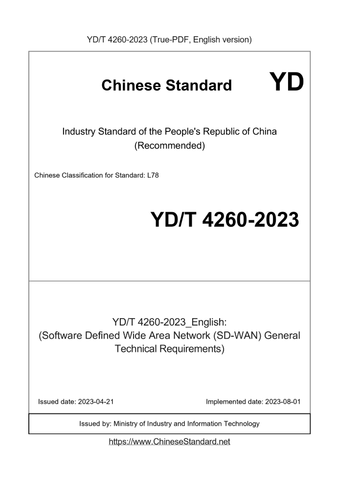 Basic dataStandard ID: YD/T 4260-2023 (YD/T4260-2023)Description (Translated English): (Software Defined Wide Area Network (SD-WAN) General Technical Requirements) Sector / Industry: Telecommunication Industry Standard (Recommended) Classification of Chinese Standard: L78 Classification of International Standard: 33.040.40 Date of Issue: 2023-04-21 Date of Implementation: 2023-08-01 Issuing agency(ies): Ministry of Industry and Information Technology Summary: This standard specifies the overall technical requirements for Software-Defined Wide Area Network (SD-WAN), including the definition of SD-WAN, SD-WAN functional architecture, SD-WAN basic functional requirements, SD-WAN controller interface functional requirements, SD-WAN key Processes, SD-WAN services and value-added services, etc. This standard applies to SD-WAN equipment manufacturers, SD-WAN solution providers, SD-WAN service providers, SD-WAN users, etc., standardizes SD-WAN products and services, and standardizes SD for the industry and relevant management departments. -WAN market provides support. Tips & Frequently Asked Questions:Question 1: How long will the true-PDF of YD/T 4260-2023_English be delivered?Answer: Upon your order, we will start to translate YD/T 4260-2023_English as soon as possible, and keep you informed of the progress. The lead time is typically 1 ~ 3 working days. The lengthier the document the longer the lead time.Question 2: Can I share the purchased PDF of YD/T 4260-2023_English with my colleagues?Answer: Yes. The purchased PDF of YD/T 4260-2023_English will be deemed to be sold to your employer/organization who actually pays for it, including your colleagues and your employer's intranet.Question 3: Does the price include tax/VAT?Answer: Yes. Our tax invoice, downloaded/delivered in 9 seconds, includes all tax/VAT and complies with 100+ countries' tax regulations (tax exempted in 100+ countries) -- See Avoidance of Double Taxation Agreements (DTAs): List of DTAs signed between Singapore and 100+ countriesQuestion 4: Do you accept my currency other than USD?Answer: Yes. If you need your currency to be printed on the invoice, please write an email to Sales@ChineseStandard.net. In 2 working-hours, we will create a special link for you to pay in any currencies. Otherwise, follow the normal steps: Add to Cart -- Checkout -- Select your currency to pay. |