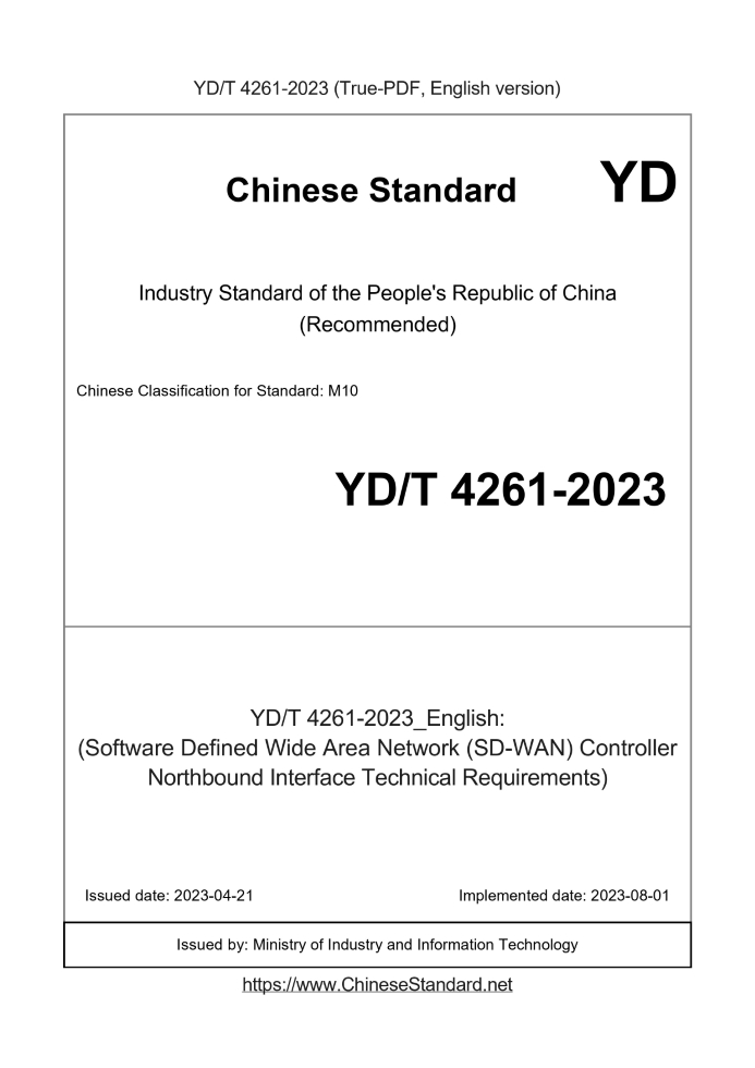 Basic dataStandard ID: YD/T 4261-2023 (YD/T4261-2023)Description (Translated English): (Software Defined Wide Area Network (SD-WAN) Controller Northbound Interface Technical Requirements) Sector / Industry: Telecommunication Industry Standard (Recommended) Classification of Chinese Standard: M10 Classification of International Standard: 33.040.40 Date of Issue: 2023-04-21 Date of Implementation: 2023-08-01 Issuing agency(ies): Ministry of Industry and Information Technology Summary: This standard specifies the requirements for the northbound interface of the software-defined wide area network SD-WAN service controller, including the business process and resource definition of the controller northbound interface. This standard applies to equipment manufacturers, SD-WAN service providers, SD-WAN users, etc., standardizes SD-WAN products and services, and provides support for relevant national management departments to regulate the SD-WAN market. Tips & Frequently Asked Questions:Question 1: How long will the true-PDF of YD/T 4261-2023_English be delivered?Answer: Upon your order, we will start to translate YD/T 4261-2023_English as soon as possible, and keep you informed of the progress. The lead time is typically 1 ~ 3 working days. The lengthier the document the longer the lead time.Question 2: Can I share the purchased PDF of YD/T 4261-2023_English with my colleagues?Answer: Yes. The purchased PDF of YD/T 4261-2023_English will be deemed to be sold to your employer/organization who actually pays for it, including your colleagues and your employer's intranet.Question 3: Does the price include tax/VAT?Answer: Yes. Our tax invoice, downloaded/delivered in 9 seconds, includes all tax/VAT and complies with 100+ countries' tax regulations (tax exempted in 100+ countries) -- See Avoidance of Double Taxation Agreements (DTAs): List of DTAs signed between Singapore and 100+ countriesQuestion 4: Do you accept my currency other than USD?Answer: Yes. If you need your currency to be printed on the invoice, please write an email to Sales@ChineseStandard.net. In 2 working-hours, we will create a special link for you to pay in any currencies. Otherwise, follow the normal steps: Add to Cart -- Checkout -- Select your currency to pay. |