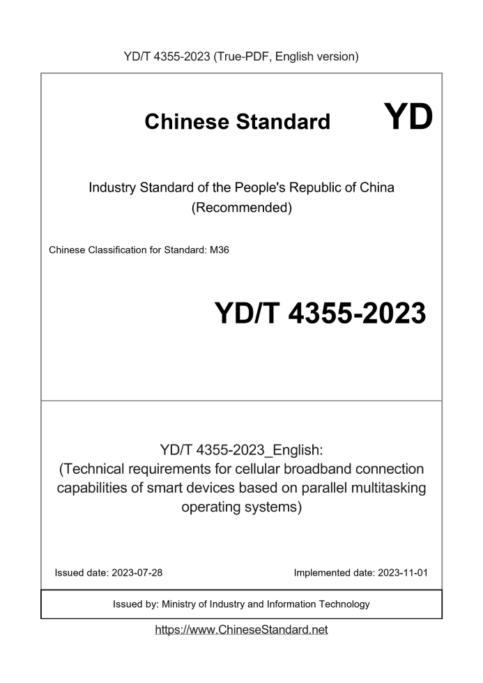 Basic dataStandard ID: YD/T 4355-2023 (YD/T4355-2023)Description (Translated English): (Technical requirements for cellular broadband connection capabilities of smart devices based on parallel multitasking operating systems) Sector / Industry: Telecommunication Industry Standard (Recommended) Classification of Chinese Standard: M36 Classification of International Standard: 33.060.99 Date of Issue: 2023-07-28 Date of Implementation: 2023-11-01 Issuing agency(ies): Ministry of Industry and Information Technology Summary: This standard specifies the technical requirements for cellular broadband connection capabilities of parallel multi-tasking operating system smart devices, including communication functions and performance, typical implementation methods, antenna performance, reliability, electromagnetic compatibility, etc. Communication function and performance requirements mainly include 4G, 5G Communication capability operating bandwidth (Operating band), physical layer functional requirements, layer 2/layer 3 technical requirements, non-access layer technical requirements, basic process requirements, business function requirements, terminal radio frequency index requirements, terminal performance requirements, uplink enhancement performance Ask to wait. This standard applies to parallel multi-tasking operating system smart devices with cellular broadband connection capabilities, such as laptops, tablets, etc. |