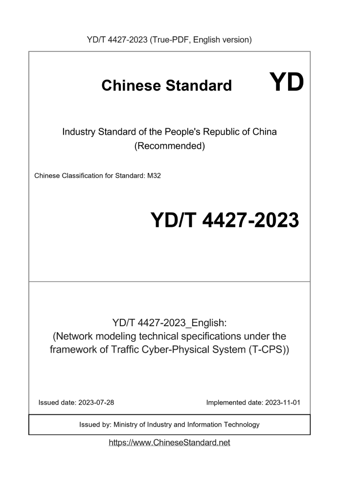 Basic dataStandard ID: YD/T 4427-2023 (YD/T4427-2023)Description (Translated English): (Network modeling technical specifications under the framework of Traffic Cyber-Physical System (T-CPS)) Sector / Industry: Telecommunication Industry Standard (Recommended) Classification of Chinese Standard: M32 Classification of International Standard: 33.040.40 Date of Issue: 2023-07-28 Date of Implementation: 2023-11-01 Issuing agency(ies): Ministry of Industry and Information Technology Summary: This standard specifies the technical specifications for network modeling of transportation cyber-physical systems (T-CPS), and specifies the overall requirements for complex network models and functional technical requirements for modules such as data preparation module, network modeling module, visualization module, and decision support module. . This standard is applicable to information analysis and correlation analysis of transportation systems, multi-layer, multi-dimensional, time-varying complex network modeling, statistical visualization of dynamic time-varying characteristics, and collaborative control. Tips & Frequently Asked Questions:Question 1: How long will the true-PDF of YD/T 4427-2023_English be delivered?Answer: Upon your order, we will start to translate YD/T 4427-2023_English as soon as possible, and keep you informed of the progress. The lead time is typically 1 ~ 3 working days. The lengthier the document the longer the lead time.Question 2: Can I share the purchased PDF of YD/T 4427-2023_English with my colleagues?Answer: Yes. The purchased PDF of YD/T 4427-2023_English will be deemed to be sold to your employer/organization who actually pays for it, including your colleagues and your employer's intranet.Question 3: Does the price include tax/VAT?Answer: Yes. Our tax invoice, downloaded/delivered in 9 seconds, includes all tax/VAT and complies with 100+ countries' tax regulations (tax exempted in 100+ countries) -- See Avoidance of Double Taxation Agreements (DTAs): List of DTAs signed between Singapore and 100+ countriesQuestion 4: Do you accept my currency other than USD?Answer: Yes. If you need your currency to be printed on the invoice, please write an email to Sales@ChineseStandard.net. In 2 working-hours, we will create a special link for you to pay in any currencies. Otherwise, follow the normal steps: Add to Cart -- Checkout -- Select your currency to pay. |