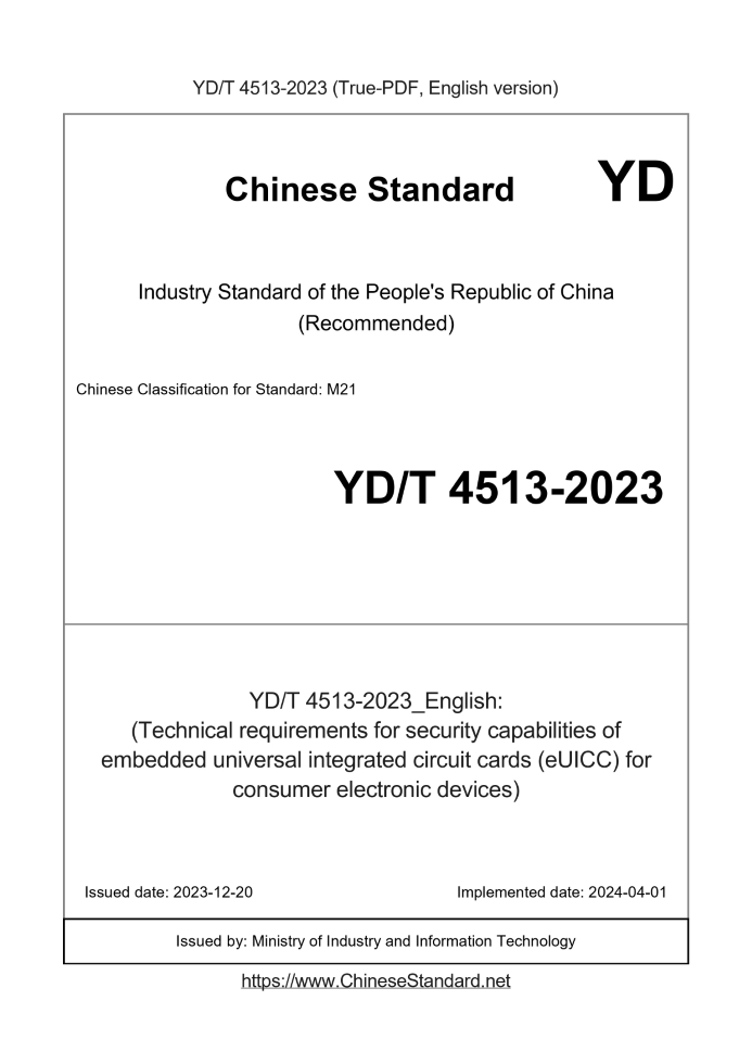 Basic dataStandard ID: YD/T 4513-2023 (YD/T4513-2023)Description (Translated English): (Technical requirements for security capabilities of embedded universal integrated circuit cards (eUICC) for consumer electronic devices) Sector / Industry: Telecommunication Industry Standard (Recommended) Classification of Chinese Standard: M21 Classification of International Standard: 33.030 Date of Issue: 2023-12-20 Date of Implementation: 2024-04-01 Issuing agency(ies): Ministry of Industry and Information Technology Summary: This standard specifies the security technical requirements for embedded universal integrated circuit cards (eUICC) of consumer electronic devices, including security issue definitions, security objectives, security functions and security assurance requirements. This standard applies to the design, R&D and testing and evaluation activities of eUICC products for consumer electronic devices. Tips & Frequently Asked Questions:Question 1: How long will the true-PDF of YD/T 4513-2023_English be delivered?Answer: Upon your order, we will start to translate YD/T 4513-2023_English as soon as possible, and keep you informed of the progress. The lead time is typically 1 ~ 3 working days. The lengthier the document the longer the lead time.Question 2: Can I share the purchased PDF of YD/T 4513-2023_English with my colleagues?Answer: Yes. The purchased PDF of YD/T 4513-2023_English will be deemed to be sold to your employer/organization who actually pays for it, including your colleagues and your employer's intranet.Question 3: Does the price include tax/VAT?Answer: Yes. Our tax invoice, downloaded/delivered in 9 seconds, includes all tax/VAT and complies with 100+ countries' tax regulations (tax exempted in 100+ countries) -- See Avoidance of Double Taxation Agreements (DTAs): List of DTAs signed between Singapore and 100+ countriesQuestion 4: Do you accept my currency other than USD?Answer: Yes. If you need your currency to be printed on the invoice, please write an email to Sales@ChineseStandard.net. In 2 working-hours, we will create a special link for you to pay in any currencies. Otherwise, follow the normal steps: Add to Cart -- Checkout -- Select your currency to pay. |