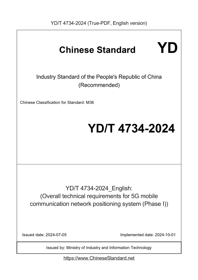 Basic dataStandard ID: YD/T 4734-2024 (YD/T4734-2024)Description (Translated English): (Overall technical requirements for 5G mobile communication network positioning system (Phase I)) Sector / Industry: Telecommunication Industry Standard (Recommended) Classification of Chinese Standard: M36 Classification of International Standard: 33.060 Date of Issue: 2024-07-05 Date of Implementation: 2024-10-01 Issuing agency(ies): Ministry of Industry and Information Technology Summary: This standard specifies the overall technical requirements for positioning under the 5G independent networking mode, including technical requirements such as positioning architecture, protocol, positioning business process, positioning technical process, and security. It also specifies reference technical materials such as positioning architecture and protocol for industry users to achieve data within the park. This standard applies to network deployment and equipment development such as base stations, terminals, and core networks that support 5G positioning. Tips & Frequently Asked Questions:Question 1: How long will the true-PDF of YD/T 4734-2024_English be delivered?Answer: Upon your order, we will start to translate YD/T 4734-2024_English as soon as possible, and keep you informed of the progress. The lead time is typically 1 ~ 3 working days. The lengthier the document the longer the lead time.Question 2: Can I share the purchased PDF of YD/T 4734-2024_English with my colleagues?Answer: Yes. The purchased PDF of YD/T 4734-2024_English will be deemed to be sold to your employer/organization who actually pays for it, including your colleagues and your employer's intranet.Question 3: Does the price include tax/VAT?Answer: Yes. Our tax invoice, downloaded/delivered in 9 seconds, includes all tax/VAT and complies with 100+ countries' tax regulations (tax exempted in 100+ countries) -- See Avoidance of Double Taxation Agreements (DTAs): List of DTAs signed between Singapore and 100+ countriesQuestion 4: Do you accept my currency other than USD?Answer: Yes. If you need your currency to be printed on the invoice, please write an email to Sales@ChineseStandard.net. In 2 working-hours, we will create a special link for you to pay in any currencies. Otherwise, follow the normal steps: Add to Cart -- Checkout -- Select your currency to pay. |