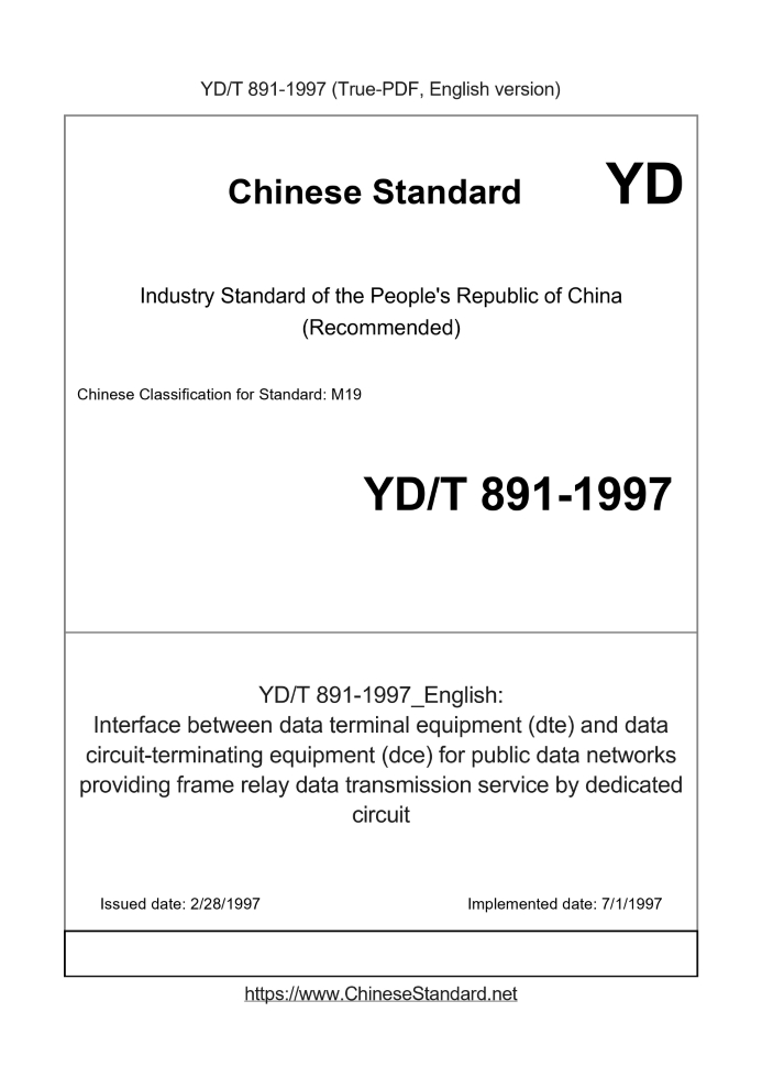 Basic dataStandard ID: YD/T 891-1997 (YD/T891-1997)Description (Translated English): Interface between data terminal equipment (dte) and data circuit-terminating equipment (dce) for public data networks providing frame relay data transmission service by dedicated circuit Sector / Industry: Telecommunication Industry Standard (Recommended) Classification of Chinese Standard: M19 Word Count Estimation: 106,160 Date of Issue: 2/28/1997 Date of Implementation: 7/1/1997 Adopted Standard: ITU-T X.36-96, IDT; ISO/8583-87, NEQ Summary: This standard specifies the data terminal equipment (DTE) frame relay data transmission services provided by public data networks using dedicated circuits and data circuit-terminating interface device (DCE) between describes the Frame Relay transmission services. It includes two cases: 1) a permanent frame relay connection; 2) from call signaling messages to establish the frame relay connection. Tips & Frequently Asked Questions:Question 1: How long will the true-PDF of YD/T 891-1997_English be delivered?Answer: Upon your order, we will start to translate YD/T 891-1997_English as soon as possible, and keep you informed of the progress. The lead time is typically 1 ~ 3 working days. The lengthier the document the longer the lead time.Question 2: Can I share the purchased PDF of YD/T 891-1997_English with my colleagues?Answer: Yes. The purchased PDF of YD/T 891-1997_English will be deemed to be sold to your employer/organization who actually pays for it, including your colleagues and your employer's intranet.Question 3: Does the price include tax/VAT?Answer: Yes. Our tax invoice, downloaded/delivered in 9 seconds, includes all tax/VAT and complies with 100+ countries' tax regulations (tax exempted in 100+ countries) -- See Avoidance of Double Taxation Agreements (DTAs): List of DTAs signed between Singapore and 100+ countriesQuestion 4: Do you accept my currency other than USD?Answer: Yes. If you need your currency to be printed on the invoice, please write an email to Sales@ChineseStandard.net. In 2 working-hours, we will create a special link for you to pay in any currencies. Otherwise, follow the normal steps: Add to Cart -- Checkout -- Select your currency to pay. |