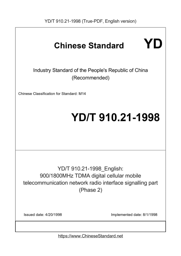 Basic dataStandard ID: YD/T 910.21-1998 (YD/T910.21-1998)Description (Translated English): 900/1800MHz TDMA digital cellular mobile telecommunication network radio interface signalling part (Phase 2) Sector / Industry: Telecommunication Industry Standard (Recommended) Classification of Chinese Standard: M14 Word Count Estimation: 220,212 Date of Issue: 4/20/1998 Date of Implementation: 8/1/1998 Summary: This standard specifies the 900/1800MHzTDMA digital cellular mobile radio communication network interface signaling standards. It comprises a radio interface physical layer, data link layer and the third layer signaling content. Including wireless fist sublayer source management, mobility management sub-layer and the third sub-layer (call management, supplementary service management, and short message service management) in the third layer. Taking into account the implementation of data services, including a radio link protocol some non-transparent operations in space interface used. This standard applies to 900/1800MHz TDMA digital cellular systems for research and development, operations, management, planning, design or production-related equipment use. Tips & Frequently Asked Questions:Question 1: How long will the true-PDF of YD/T 910.21-1998_English be delivered?Answer: Upon your order, we will start to translate YD/T 910.21-1998_English as soon as possible, and keep you informed of the progress. The lead time is typically 1 ~ 3 working days. The lengthier the document the longer the lead time.Question 2: Can I share the purchased PDF of YD/T 910.21-1998_English with my colleagues?Answer: Yes. The purchased PDF of YD/T 910.21-1998_English will be deemed to be sold to your employer/organization who actually pays for it, including your colleagues and your employer's intranet.Question 3: Does the price include tax/VAT?Answer: Yes. Our tax invoice, downloaded/delivered in 9 seconds, includes all tax/VAT and complies with 100+ countries' tax regulations (tax exempted in 100+ countries) -- See Avoidance of Double Taxation Agreements (DTAs): List of DTAs signed between Singapore and 100+ countriesQuestion 4: Do you accept my currency other than USD?Answer: Yes. If you need your currency to be printed on the invoice, please write an email to Sales@ChineseStandard.net. In 2 working-hours, we will create a special link for you to pay in any currencies. Otherwise, follow the normal steps: Add to Cart -- Checkout -- Select your currency to pay. |