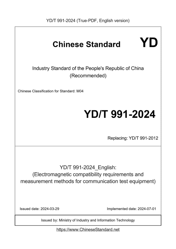YD/T 991-2024 English PDFYD/T 991: Historical versions