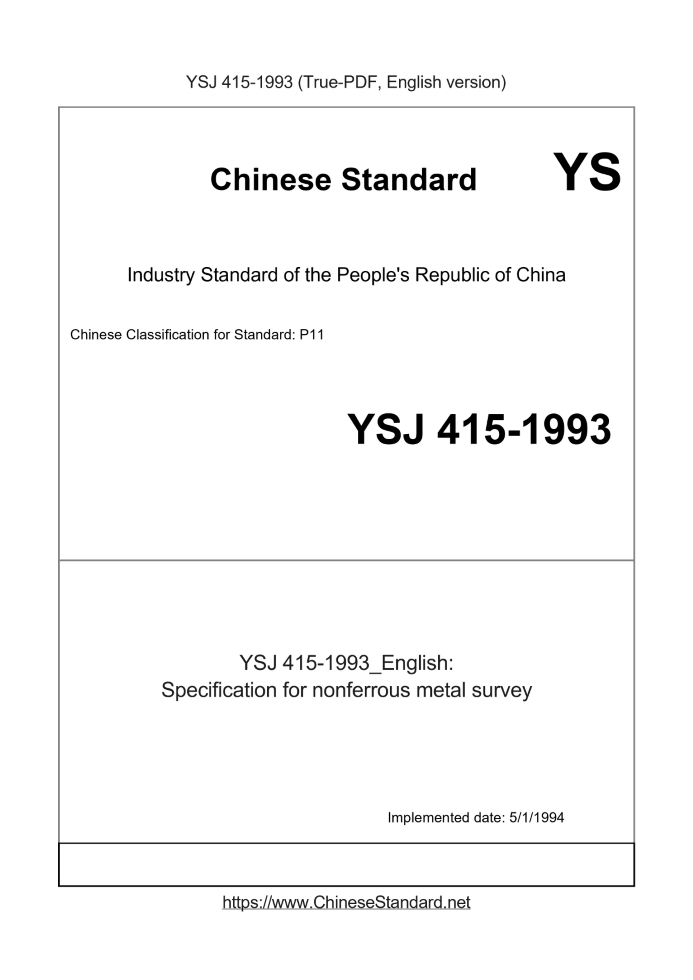 Delivery: <= 8 days. True-PDF full-copy in English will be manually translated and delivered via email. YSJ415-1993: Specification for nonferrous metal survey