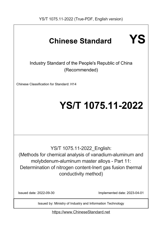 Basic dataStandard ID: YS/T 1075.11-2022 (YS/T1075.11-2022)Description (Translated English): (Methods for chemical analysis of vanadium-aluminum and molybdenum-aluminum master alloys - Part 11: Determination of nitrogen content-Inert gas fusion thermal conductivity method) Sector / Industry: Nonferrous Metallurgy Industry Standard (Recommended) Classification of Chinese Standard: H14 Classification of International Standard: 77.120.99 Date of Issue: 2022-09-30 Date of Implementation: 2023-04-01 Issuing agency(ies): Ministry of Industry and Information Technology Tips & Frequently Asked Questions:Question 1: How long will the true-PDF of YS/T 1075.11-2022_English be delivered?Answer: Upon your order, we will start to translate YS/T 1075.11-2022_English as soon as possible, and keep you informed of the progress. The lead time is typically 1 ~ 3 working days. The lengthier the document the longer the lead time.Question 2: Can I share the purchased PDF of YS/T 1075.11-2022_English with my colleagues?Answer: Yes. The purchased PDF of YS/T 1075.11-2022_English will be deemed to be sold to your employer/organization who actually pays for it, including your colleagues and your employer's intranet.Question 3: Does the price include tax/VAT?Answer: Yes. Our tax invoice, downloaded/delivered in 9 seconds, includes all tax/VAT and complies with 100+ countries' tax regulations (tax exempted in 100+ countries) -- See Avoidance of Double Taxation Agreements (DTAs): List of DTAs signed between Singapore and 100+ countriesQuestion 4: Do you accept my currency other than USD?Answer: Yes. If you need your currency to be printed on the invoice, please write an email to Sales@ChineseStandard.net. In 2 working-hours, we will create a special link for you to pay in any currencies. Otherwise, follow the normal steps: Add to Cart -- Checkout -- Select your currency to pay. |