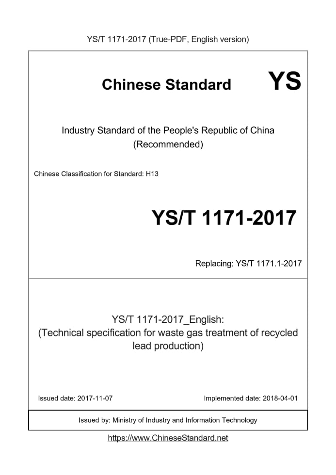YS/T 1171-2017 English PDFYS/T 1171: Historical versions