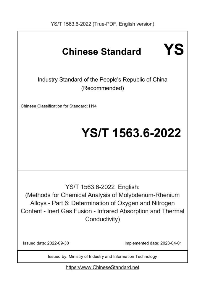 Basic dataStandard ID: YS/T 1563.6-2022 (YS/T1563.6-2022)Description (Translated English): (Methods for Chemical Analysis of Molybdenum-Rhenium Alloys - Part 6: Determination of Oxygen and Nitrogen Content - Inert Gas Fusion - Infrared Absorption and Thermal Conductivity) Sector / Industry: Nonferrous Metallurgy Industry Standard (Recommended) Classification of Chinese Standard: H14 Classification of International Standard: 77.120.99 Date of Issue: 2022-09-30 Date of Implementation: 2023-04-01 Issuing agency(ies): Ministry of Industry and Information Technology Tips & Frequently Asked Questions:Question 1: How long will the true-PDF of YS/T 1563.6-2022_English be delivered?Answer: Upon your order, we will start to translate YS/T 1563.6-2022_English as soon as possible, and keep you informed of the progress. The lead time is typically 1 ~ 3 working days. The lengthier the document the longer the lead time.Question 2: Can I share the purchased PDF of YS/T 1563.6-2022_English with my colleagues?Answer: Yes. The purchased PDF of YS/T 1563.6-2022_English will be deemed to be sold to your employer/organization who actually pays for it, including your colleagues and your employer's intranet.Question 3: Does the price include tax/VAT?Answer: Yes. Our tax invoice, downloaded/delivered in 9 seconds, includes all tax/VAT and complies with 100+ countries' tax regulations (tax exempted in 100+ countries) -- See Avoidance of Double Taxation Agreements (DTAs): List of DTAs signed between Singapore and 100+ countriesQuestion 4: Do you accept my currency other than USD?Answer: Yes. If you need your currency to be printed on the invoice, please write an email to Sales@ChineseStandard.net. In 2 working-hours, we will create a special link for you to pay in any currencies. Otherwise, follow the normal steps: Add to Cart -- Checkout -- Select your currency to pay. |