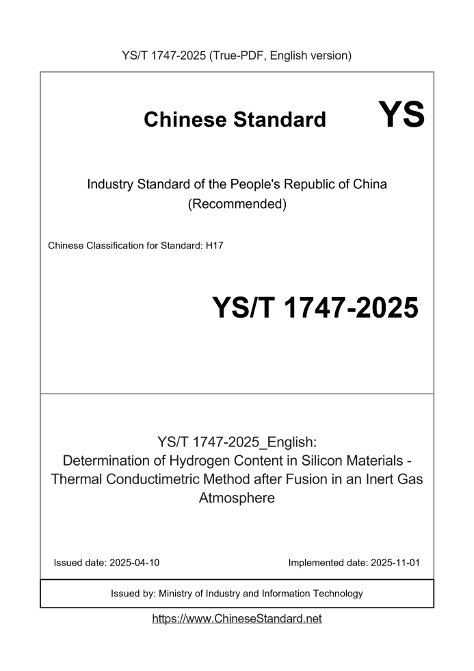 Basic dataStandard ID: YS/T 1747-2025 (YS/T1747-2025)Description (Translated English): Determination of Hydrogen Content in Silicon Materials - Thermal Conductimetric Method after Fusion in an Inert Gas Atmosphere Sector / Industry: Nonferrous Metallurgy Industry Standard (Recommended) Classification of Chinese Standard: H17 Classification of International Standard: 77.04 Date of Issue: 2025-04-10 Date of Implementation: 2025-11-01 Issuing agency(ies): Ministry of Industry and Information Technology Summary: This standard specifies the method for determining the hydrogen content in silicon materials using the inert gas melting thermal conductivity method. This document applies to the determination of the hydrogen content in silicon materials, with a determination range of 0.05��g/g to 25000��g/g. Tips & Frequently Asked Questions:Question 1: How long will the true-PDF of YS/T 1747-2025_English be delivered?Answer: Upon your order, we will start to translate YS/T 1747-2025_English as soon as possible, and keep you informed of the progress. The lead time is typically 1 ~ 3 working days. The lengthier the document the longer the lead time.Question 2: Can I share the purchased PDF of YS/T 1747-2025_English with my colleagues?Answer: Yes. The purchased PDF of YS/T 1747-2025_English will be deemed to be sold to your employer/organization who actually pays for it, including your colleagues and your employer's intranet.Question 3: Does the price include tax/VAT?Answer: Yes. Our tax invoice, downloaded/delivered in 9 seconds, includes all tax/VAT and complies with 100+ countries' tax regulations (tax exempted in 100+ countries) -- See Avoidance of Double Taxation Agreements (DTAs): List of DTAs signed between Singapore and 100+ countriesQuestion 4: Do you accept my currency other than USD?Answer: Yes. If you need your currency to be printed on the invoice, please write an email to Sales@ChineseStandard.net. In 2 working-hours, we will create a special link for you to pay in any currencies. Otherwise, follow the normal steps: Add to Cart -- Checkout -- Select your currency to pay. |