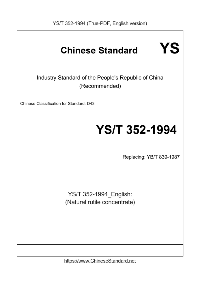 | YS/T 352-1994 | English | 199 | Add to Cart | 2 days [Need to translate] | (Natural rutile concentrate) |