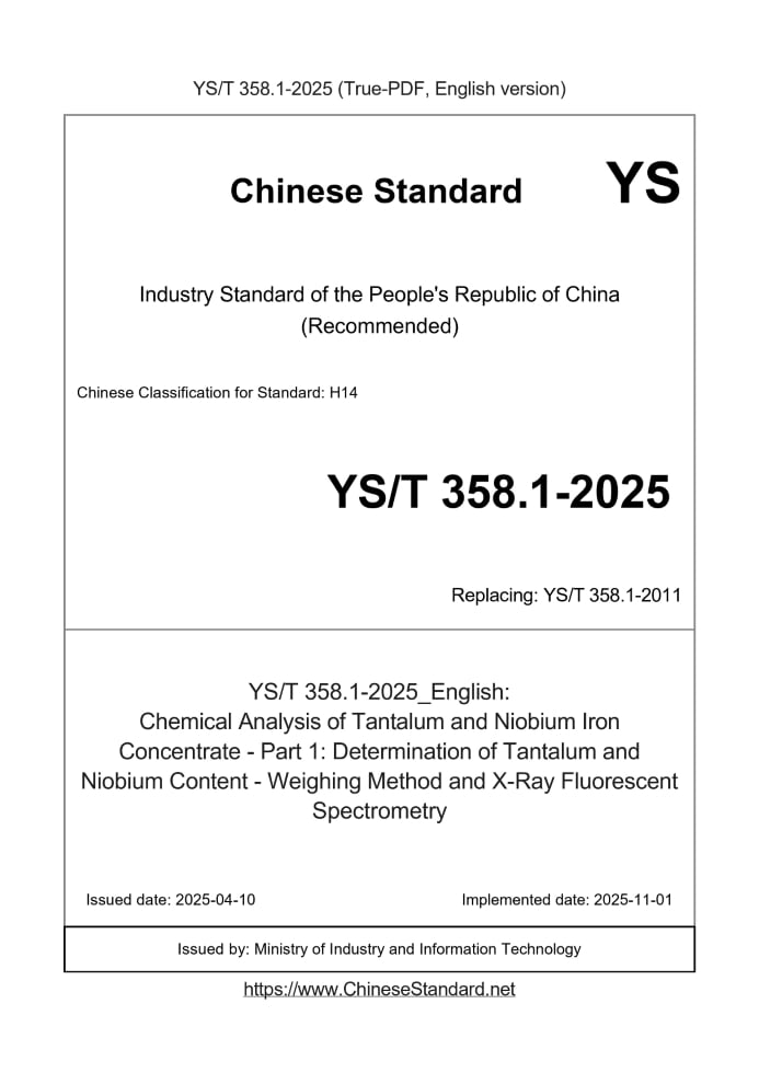 YS/T 358.1-2025 English PDFYS/T 358.1: Historical versions