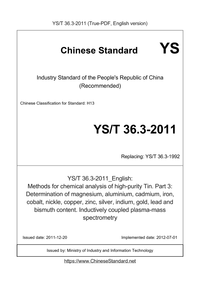 YS/T 36.3-2011 English PDFUS$259.00 · In stock