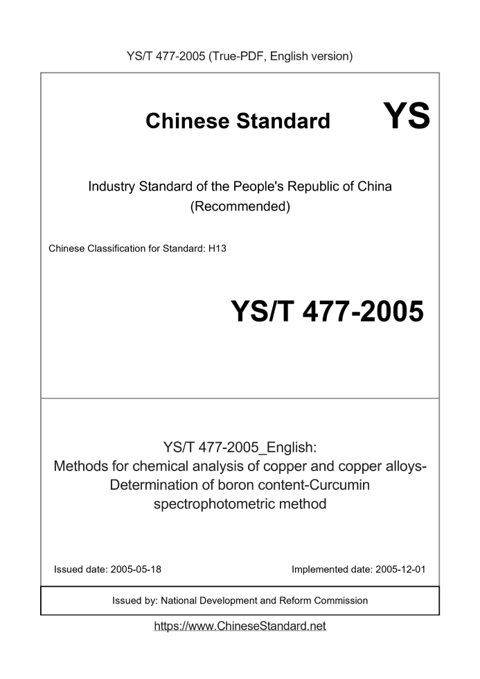 Delivery: <= 2 days. True-PDF full-copy in English will be manually translated and delivered via email. YS/T 477-2005: Methods for chemical analysis of copper and copper alloys-Determination of boron content-Curcumin spectrophotometric method Status: Obsolete