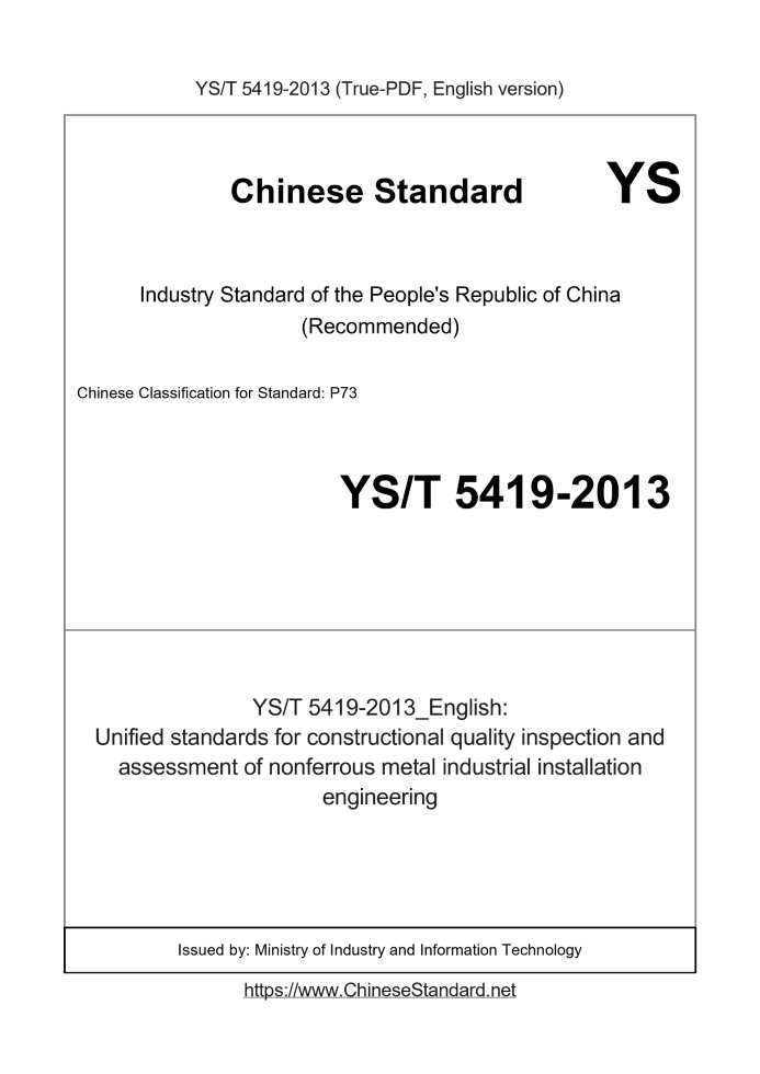 Delivery: <= 5 days. True-PDF full-copy in English will be manually translated and delivered via email. YS/T 5419-2013: Unified standards for constructional quality inspection and assessment of nonferrous metal industrial installation engineering Status: Valid