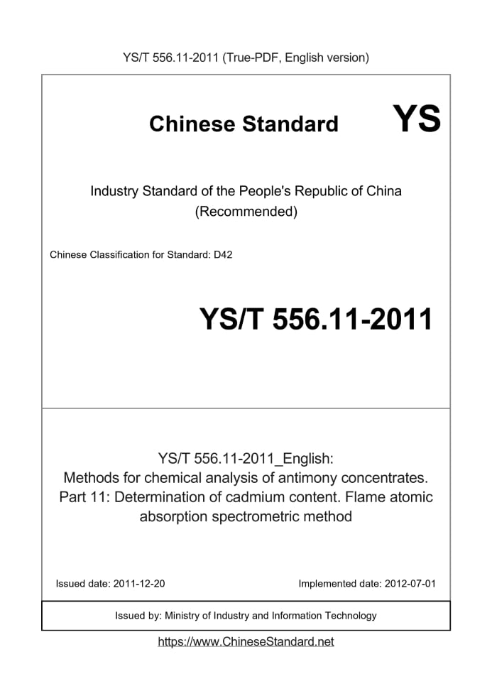 YS/T 556.11-2011 English PDFUS$159.00 · In stock