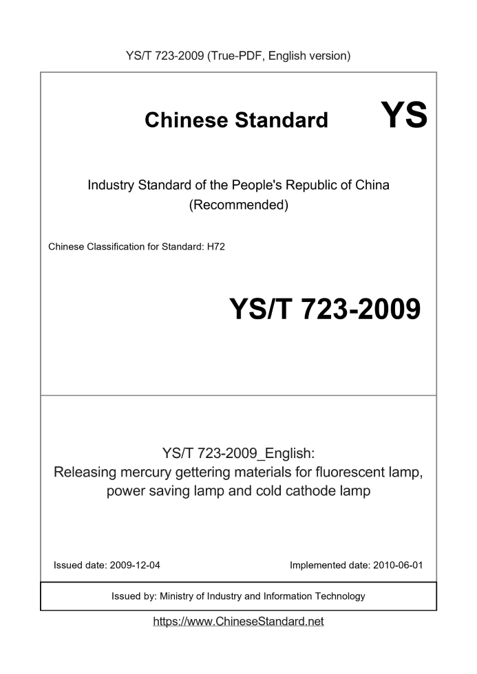 Delivery: <= 3 days. True-PDF full-copy in English will be manually translated and delivered via email. YS/T 723-2009: Releasing mercury gettering materials for fluorescent lamp, power saving lamp and cold cathode lamp Status: Valid