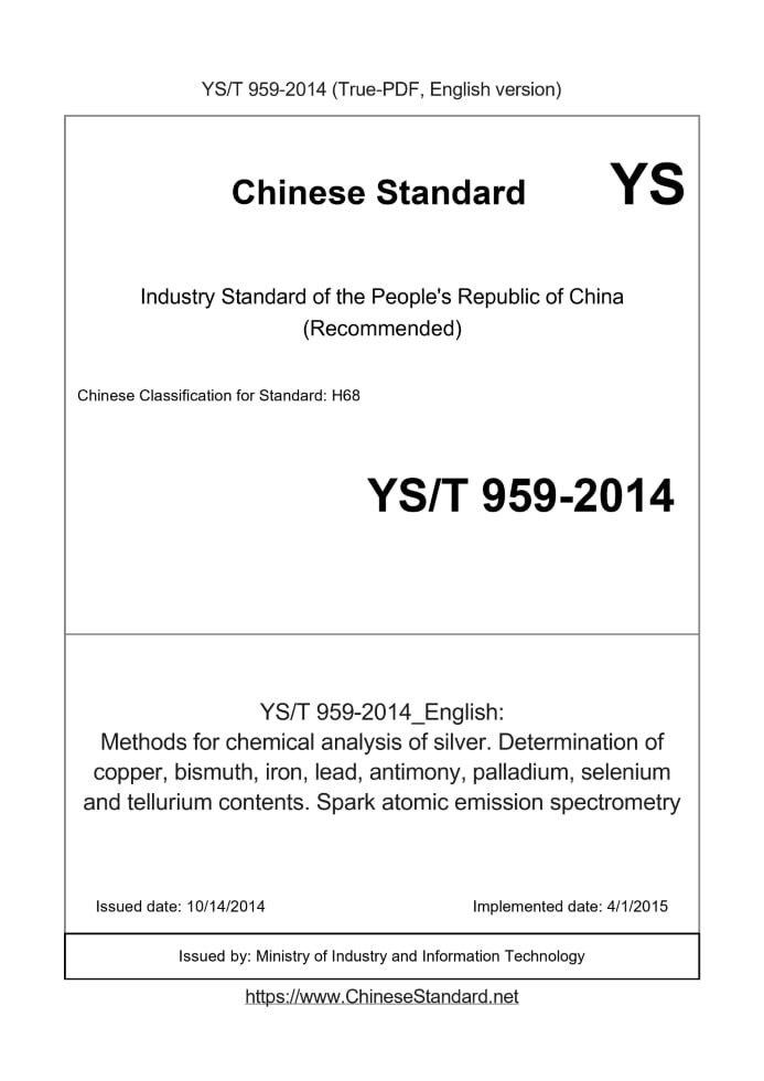 YS/T 959-2014 English PDFUS$209.00 · In stock